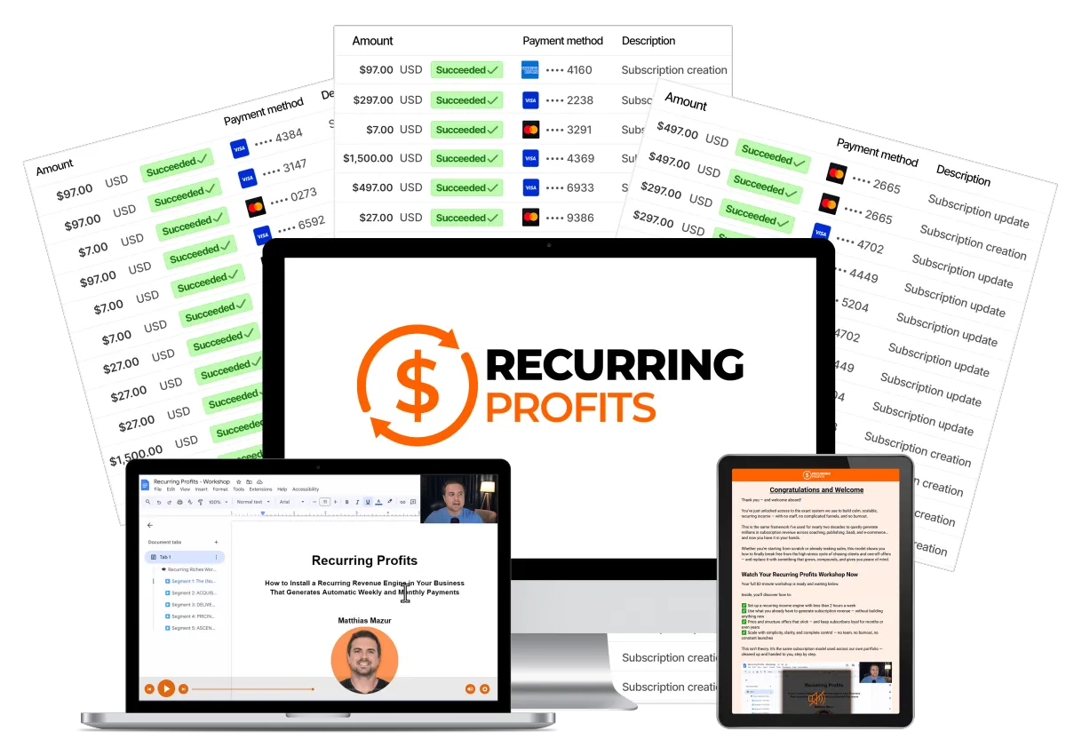 Since then, I’ve installed and deployed subscription systems across dozens of businesses in coaching, e-learning, SaaS, and e-commerce.